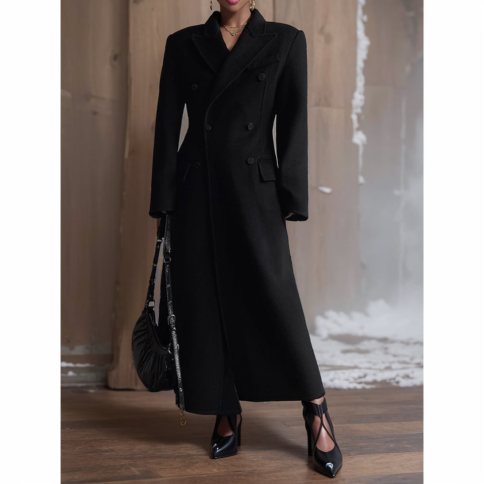 The Retro Temperament Waist Controlled Hourglass Woolen Coat is made of 80% sheep wool and 20% polyethylene terephthalate (polyester), making it a perfect choice for the Autumn Winter season. With its long sleeves, suit collar, and double-breasted placket, this coat follows the style of Europe and America. The solid color and long model also add to its elegant and classic look.